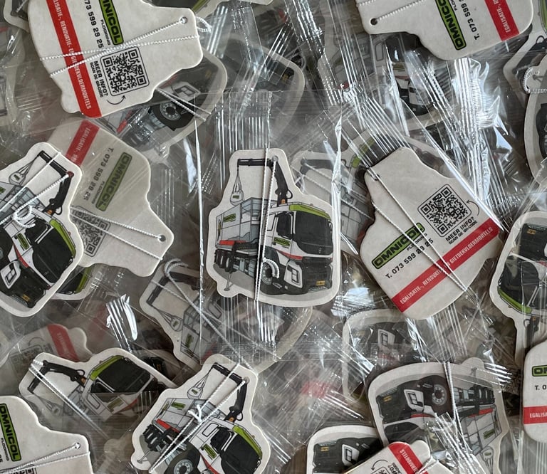 Wij creëren unieke geurhangers die indruk maken! Met onze bedrukte en gepersonaliseerde auto-geurhangers combineren wij creativiteit en geur voor een positieve beleving, verhoogde conversie en hogere klanttevredenheid. Benieuwd hoe wij uw merk een boost kunnen geven?